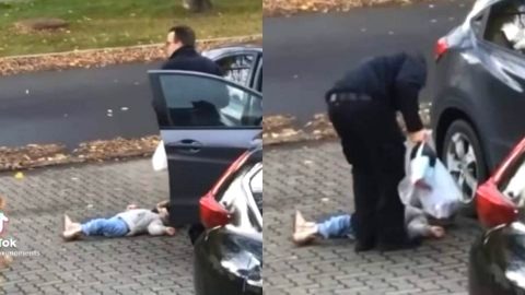 คนขับแท็กซี่คลั่ง คว้าข้อเท้าแฟนฟุตบอลลงบนพื้น ขณะที่เขาปีนขึ้นไปบนหลังคารถแท็กซี่หลังจากอังกฤษชนะยูโร