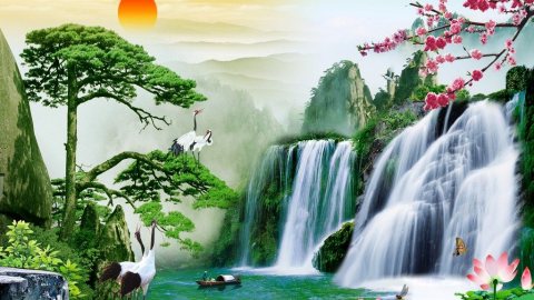 ภาพน้ำตก เรียกโชคลาภ เสริมฮวงจุ้ย