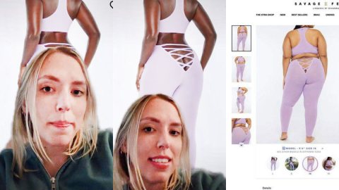 หญิงสาวคนนี้ " งุนงง " กับกางเกงเลคกิ้งที่เปิดก้นนางแบบไว้ครึ่งหนึ่ง