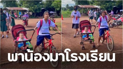 ปลื้มใจ!! เด็กเก่ง!! สาวน้อยพาน้องมาโรงเรียนด้วย เนื่องจากที่บ้านไม่มีคนช่วยเลี้ยงดู