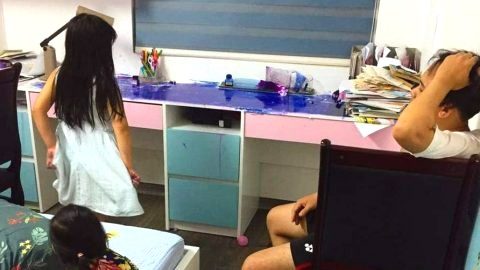 พ่อ"กุมขมับ"เมื่อเห็นหมึกน้ำเงินเต็มโต๊ะ ด้วยฝีมือลูกสาว2คน