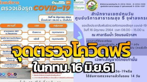 กทม.จุดตรวจโควิด-19 ฟรี 16 มิ.ย.64