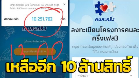 อีก 10 ล้านสิทธิ์ ลงทะเบียนคนละครึ่ง