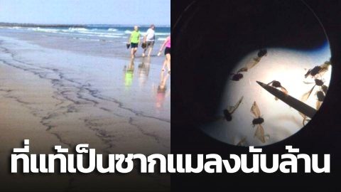 พบสารสีดำลึกลับบนชายหาด สุดท้ายกลับพบว่ากลายเป็นแมลงที่ตายแล้วนับล้าน