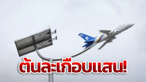 ชาวเน็ตวิจารณ์หนัก !! ใช้งบสร้างเสาไฟส่องสว่างรูปร่างเครื่องบิน ต้นหนึ่งเกือบแสนบาท