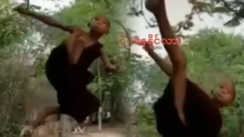 เณรพม่าเล่นตะกร้อขั้นเทพ..แต่ช้างน้อยโผล่ทั้งพวง