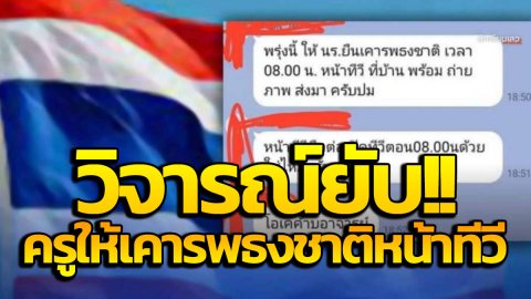 เยาวรุ่นวิจารณ์ยับ! ครูสั่งนักเรียนถ่ายรูปยืนเคารพธงชาติหน้าทีวี พร้อมหลักฐานให้ครูดูทางไลน์