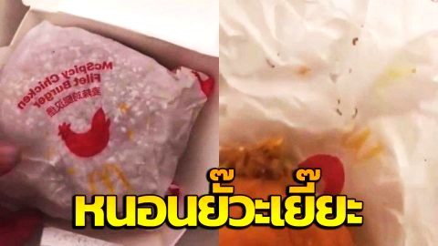 หญิงคนหนึ่งช็อก ! พบหนอนหลายสิบตัวคลุมเบอร์เกอร์ของแมคโดนัลด์ ที่ต่างประเทศ