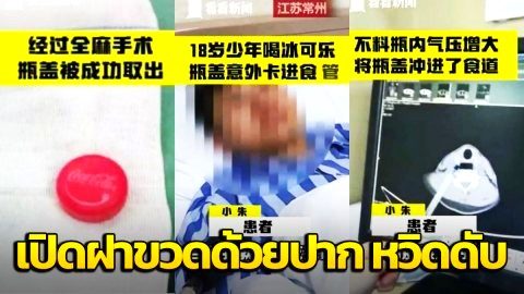 หนุ่มจีนเกือบตายเพราะฝาขวดน้ำอัดลม