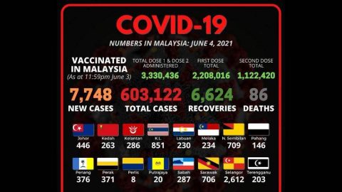 มาเลเซีย มีผู้ติดเชื้อรายใหม่ 7,748 ราย