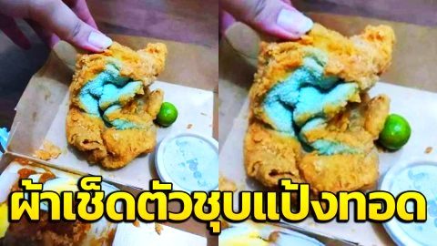 สาวคนหนึ่งพบผ้าเช็ดตัวชุบแป้งทอดแทนไก่ Jollibee ร้านดังในฟิลิปปินส์