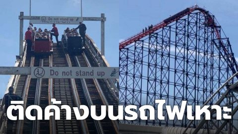 นักท่องเที่ยวติดค้างบนรถไฟเหาะ Grand National ของ Blackpool ที่สูงถึง 62 ฟุต (19 ม.)