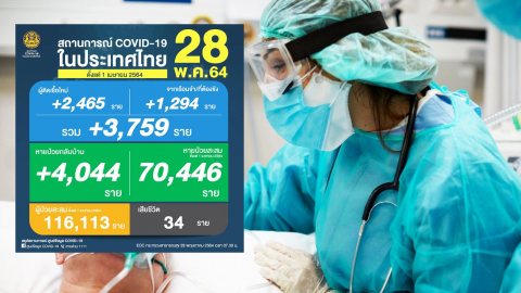 โควิดวันนี้ ตๅยเพิ่ม 34 คน ป่วยใหม่ 3,759 ราย