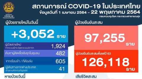 ไทย พบผู้ติดเชื้อรายใหม่ 3,052 ราย