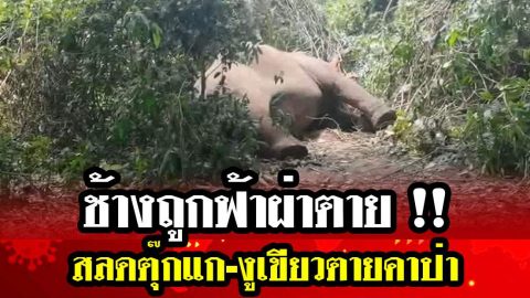 ช้างถูกฟ้าผ่าตาย !! สลดตุ๊กแก-งูเขียวตายคาป่า
