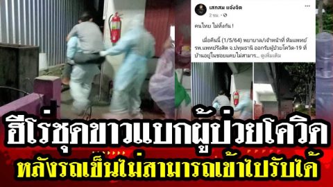 ฮีโร่ชุดขาวแบกผู้ป่วยโควิด !! หลังรถเข็นไม่สามารถเข้าไปรับได้