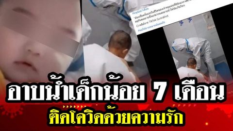 อาบน้ำเด็กน้อย 7 เดือน ติดโควิดด้วยความรัก