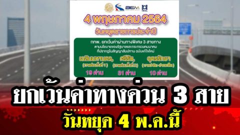 ยกเว้นค่าทางด่วน 3 สาย !! วันหยุด 4 พ.ค.นี้