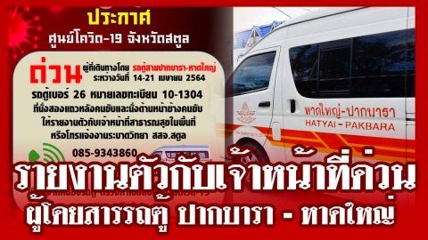 ผู้โดยสารรถตู้ ปากบารา-หาดใหญ่ ไปรายงานตัวต่อเจ้าหน้าที่ด่วน