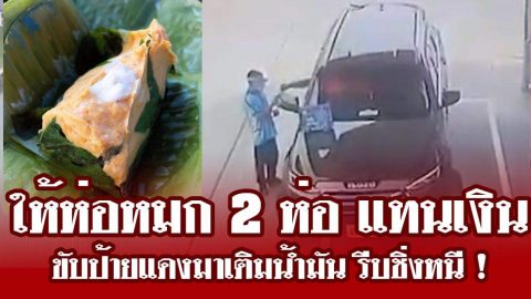 แบบนี้มีด้วย ให้ห่อหมก 2 ห่อ แทนเงิน ขับป้ายแดงมาเติมน้ำมัน รีบชิ่งหนี !