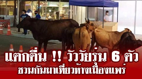 แตกตื่น !! วัววัยรุ่น 6 ตัว ชวนกันมาเที่ยวห้างเมืองแพร่