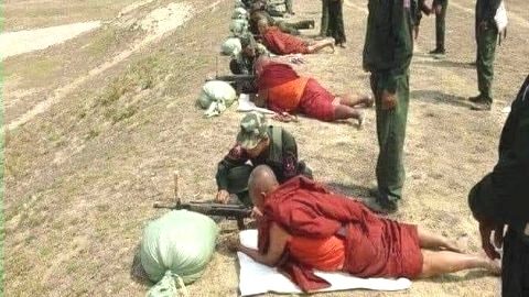 กลุ่มชาติพันธุ์ กำลังถวายวิธีฝึกอาวุธให้กับหลวงพ่อ