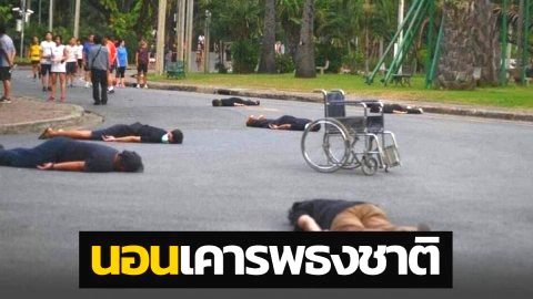 ชาวเน็ตเทียบชัดๆ ภาพคล้ายม็อบ 3 นิ้ว นอนคว่ำหน้าเคารพธงชาติ vs หมานอนตากแอร์หน้าเซเว่น!!