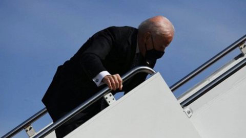 ประธานาธิบดีโจ ไบเดน วัย 78 ปี เดินสะดุดบันไดขณะขึ้นเครื่องบิน "แอร์ ฟอร์ซ วัน"