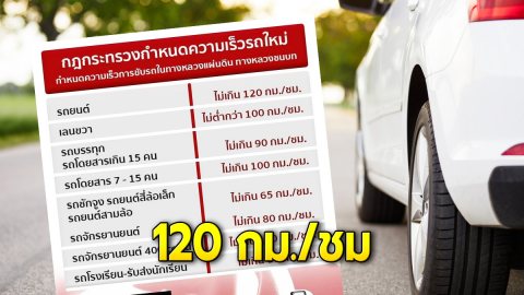 กฏหมายใหม่มาแล้วรถยนต์วิ่งบนถนนทั่วไป 120กม./ชม