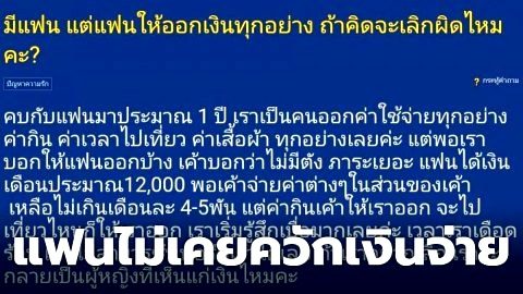 สาวบ่นแฟนไม่เคยควักเงินจ่ายสักบาท ตั้งแต่คบมา#ความรักกับภาระ