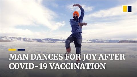 ชายชาวแคนาดาฉลองการฉีดวัคซีนโควิด -19 ด้วยการเต้นรำแบบอินเดีย