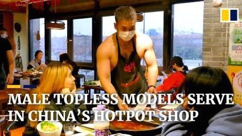 นายแบบlปลือยอกเสิร์ฟอาหารในร้านหม้อไฟจีน ได้เปลี่ยนร้านให้กลายเป็นไวรัล