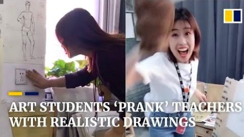 นักเรียนศิลปะในจีน ‘แกล้ง’ ครูด้วยภาพวาดเหมือนจริง