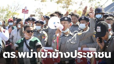 ผู้ชุมนุมพา "ตำรวจแตงโม" ของพม่าไปซ่อนตัว