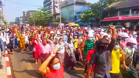 ประท้วงต่อต้านเผด็จการทหารในย่างกุ้ง!!!