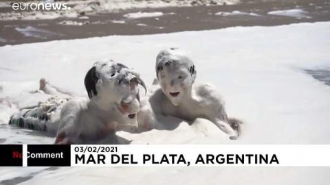 ทะเลโฟมบนชายหาดอาร์เจนตินา สร้างความพึงพอใจให้กับนักท่องเที่ยว