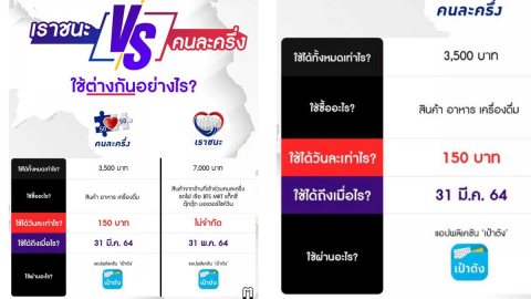 เทียบกันชัด ๆ 2 มาตรการจากรัฐ ‘คนละครึ่ง' กับ 'เราชนะ’ ต่างกันตรงไหนบ้าง?