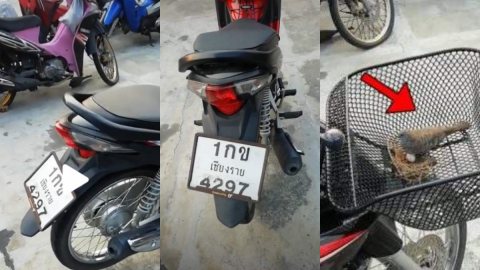 นกมาทำรังอยู่ตระกร้าหน้ารถ จยย