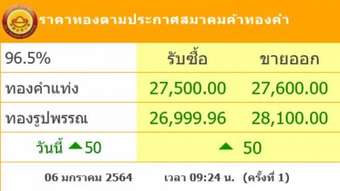 ราคาทอง เปิดตลาดเช้าวันที่ 6 ม.ค.64 ปรับขึ้นต่อเนื่อง