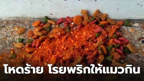 โหดร้าย โรยพริกบนอาหารให้แมวกิน