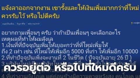 หนุ่มคิดหนักจะเดินต่อหรือออกไปทำงานที่ใหม่ เพราะ 2 ที่ สู้กันด้วยเงิน พอๆกัน