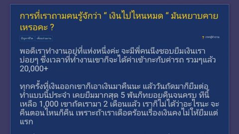 "เงินหายไปใหนหมด"ถามอย่างนี้เสียมารยาทไปหรือป่าว?สาวคนหนึ่งสงสัย
