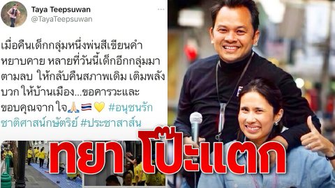 เยิน! ทยา ศรีภรรยารมว.ศึกษา โพสต์ภาพเสี้ยมคนเสื้อเหลือง ลบสีบนกำแพง ก่อนโป๊ะแตก