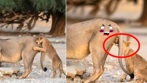 ช่างภาพสาวถึงกับงง! ลูกสิงโตแสบเรียกร้องความสนใจด้วยการงับถุงไข่พ่อ สุดท้ายแค่โดนคำรามขู่เบาๆ