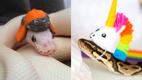 มุ้งมิ้งไปมั้ย? คนรักงูแห่ทำหมวกเก๋ไก๋ให้ 'น้องงู' ใส่แบบชิคๆ