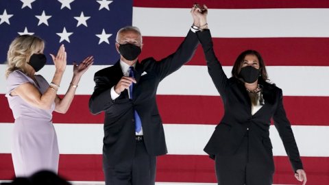 โจ ไบเดน ผู้ได้รับเลือกตั้งเป็นประธานาธิบดีกำลังกล่าวสุนทรพจน์