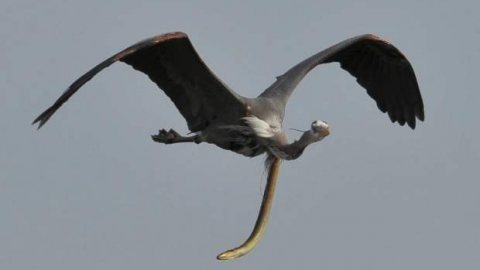 ช่วงเวลาที่น่าสยดสยองของนกกระสาดวงซวย โดนปลาไหลพุ่งทะลุคอเพื่อหนีจากการถูกกิน