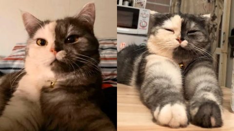 แมวตัวนี้มีใบหน้าที่เป็นเอกลักษณ์และบุคลิกที่น่ารัก