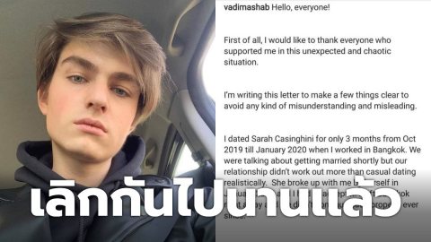 "วาดิม" เเฟน "ซาร่า" โพสต์ชี้เเจ้งในigส่วนตัวว่าเคยคบกันจริง เเต่เลิกกันไปนานเเล้วตั้งเเต่เดือนมกราคม 2563