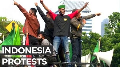 ชาวอินโดนีเซียหลายหมื่นคนประท้วงกฎหมายแรงงานฉบับใหม่